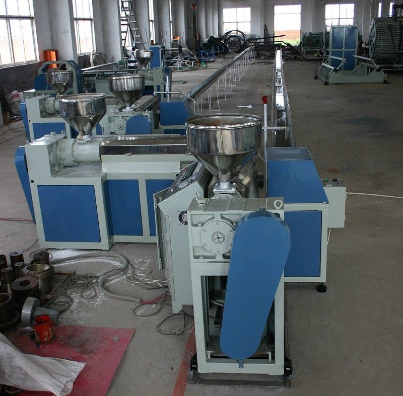 Mesin ini digunakan untuk memproduksi kawat baja PVC yang diperkuat pipa transparan. Dinding pipa terbuat dari plastik PVC transparan. Di dalam pipa-dinding, ada kawat baja spiral. Jenis pipa memiliki keuntungan dari ketahanan ekstrusi, ketahanan korosi, ketahanan listrik statis, tekanan anti-tinggi dan berjalan baik. Sangat cocok untuk penyampaian tekanan tinggi atau gas dan cairan yang mudah terbakar, pengisapan berat dan pengiriman lumpur cair.