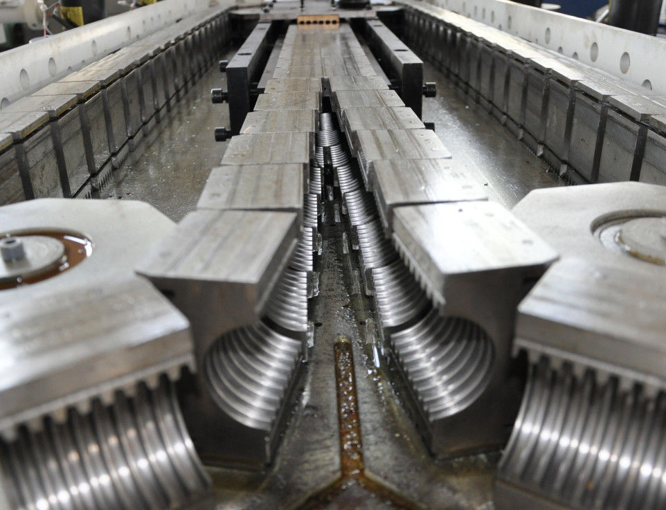 Garis ekstrusi pipa bergelombang dinding signle ini terutama berisi ekstruder, mesin pembentuk bergelombang, blok kepala dan cetakan mati, peralatan pendingin, mesin hitung dan mesin berliku.Bisaterus memproduksi berbagai jenis pipa bergelombang dinding berdiameter tunggal.