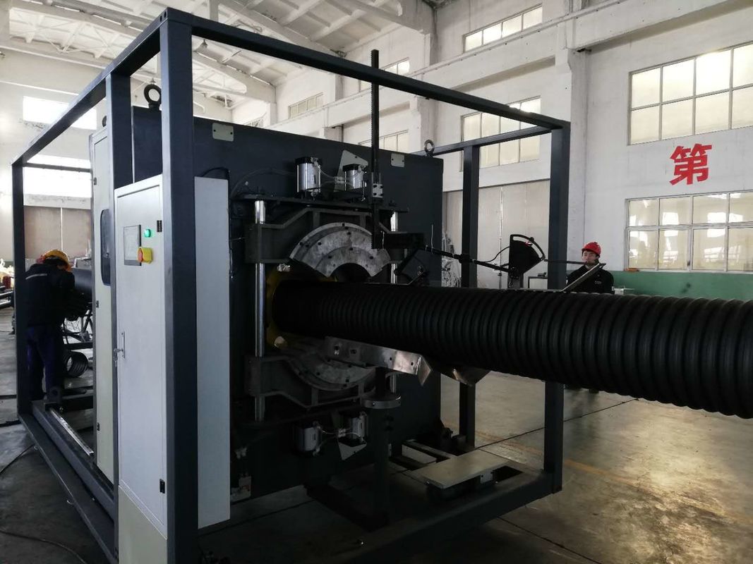 Foto Garis Mesin Produksi Ekstrusi Pipa Bergelombang Dinding Ganda Plastik / PE / PP / PVC