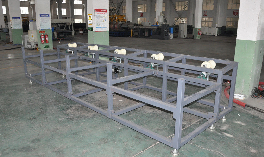 Mesin Ekstrusi Pipa HDPE berisi ekstruder sekrup, cetakan, ekstruder sekrup tunggal (untuk garis tanda), tangki kalibrasi, tangki pendingin, pengangkutan, pemotong dan penumpuk.